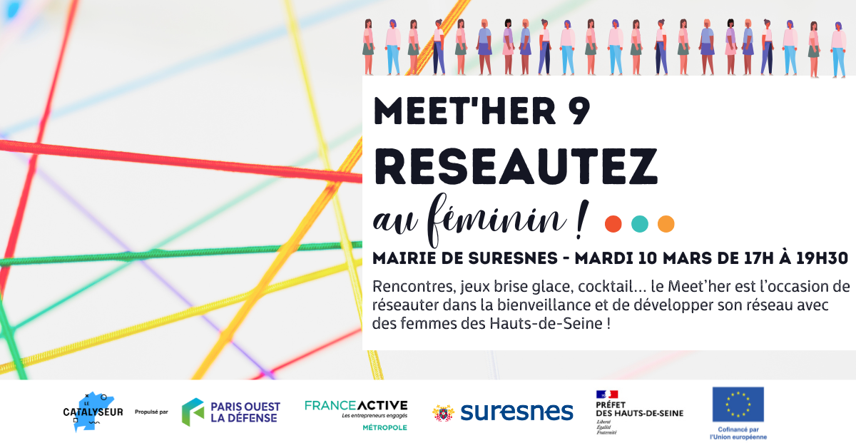 Un événement coorganisé par France Active Métropole, Le Catalyseur et Ville de Suresnes et animé par Elene Centeno – Altera Plus, Marion Nathan – La Grosse Irrésistible, Fit Fun Flow